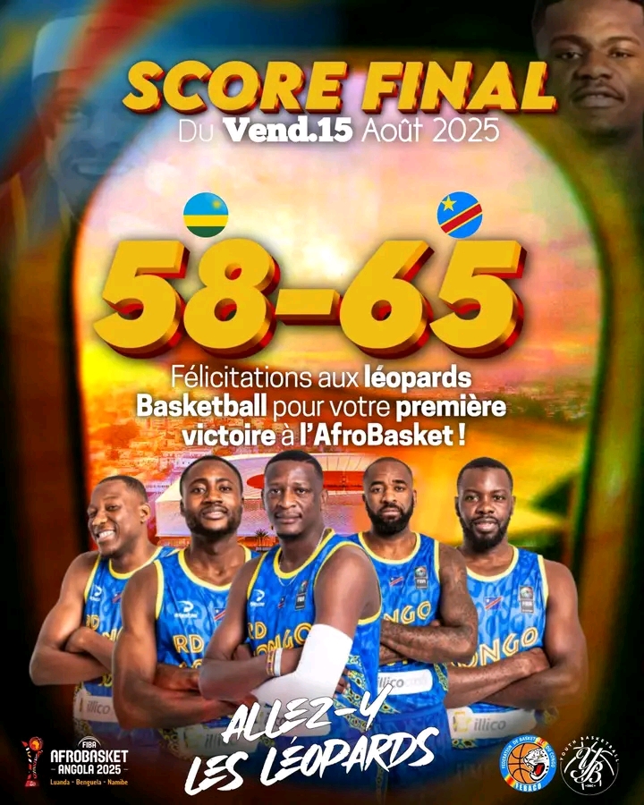 Battue lors de son entrée en lice, la République Démocratique du Congo a réagi avec autorité ce vendredi 15 août 2025 en dominant le Rwanda (65-58) dans l’Afrobasket à Namibe, lors de la 2e journée du groupe A.