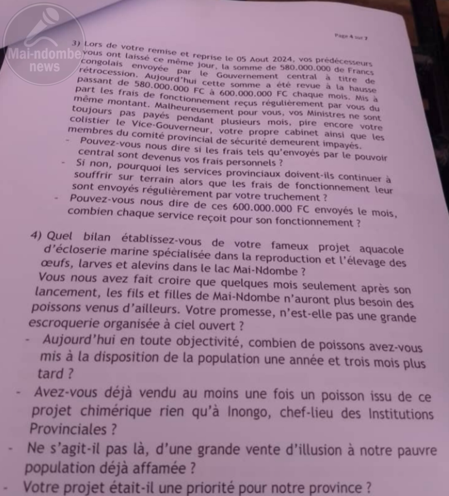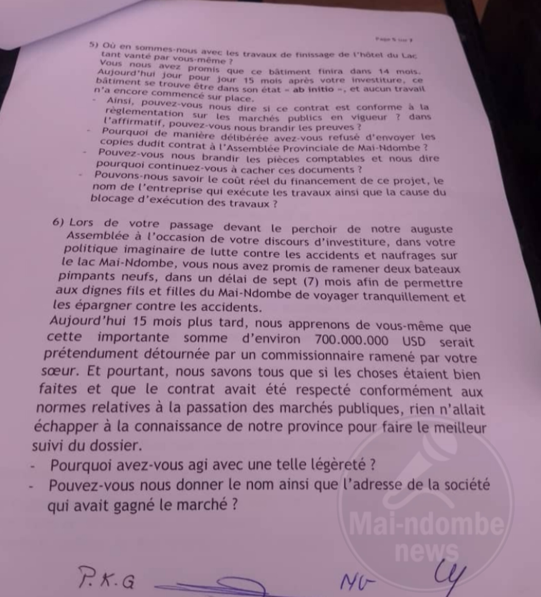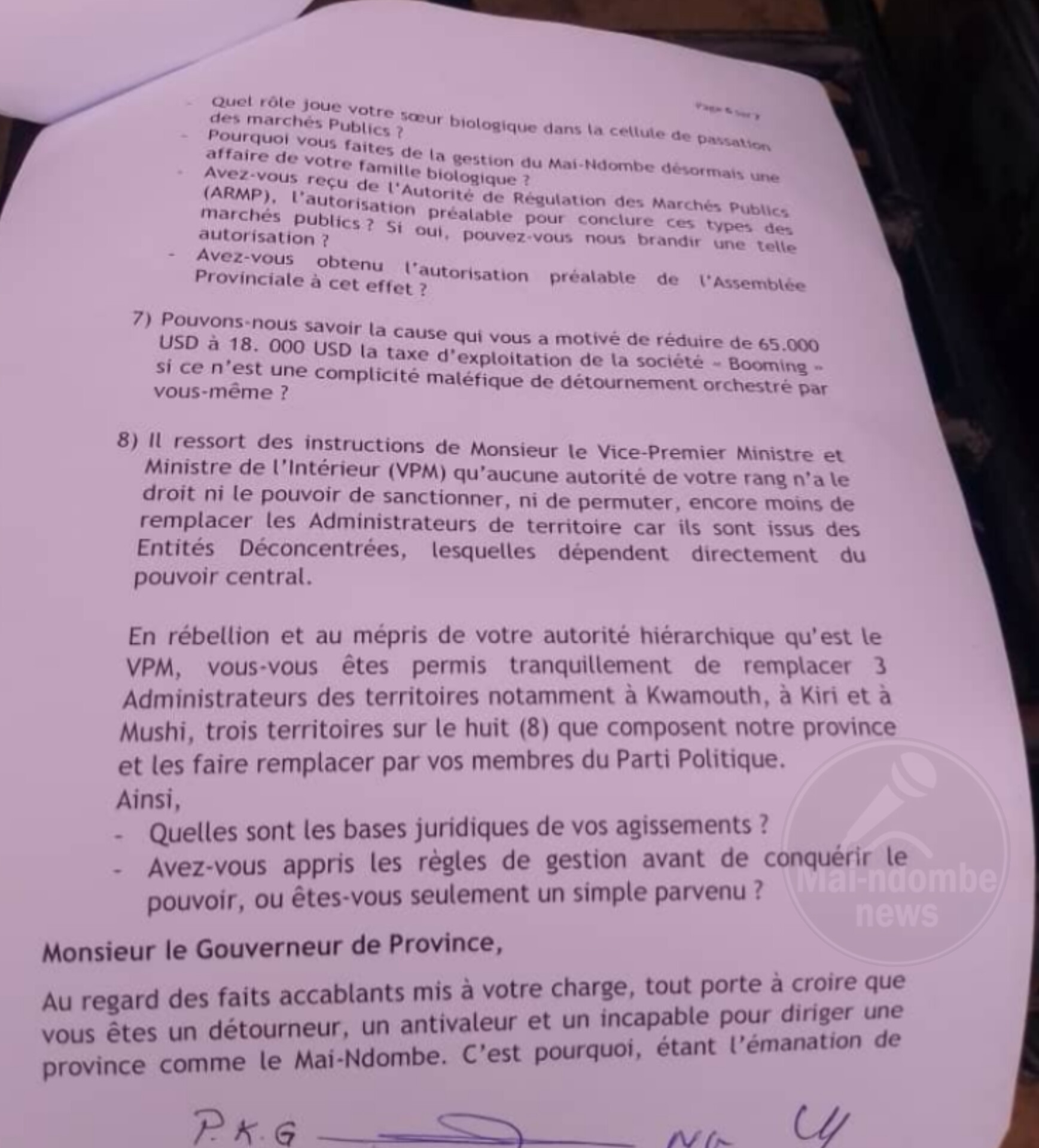 Ils accusent le chef de l’exécutif provincial de Mai-Ndombe notamment d’incompétence notoire, détournement des deniers publics et violations des lois de la RDC.