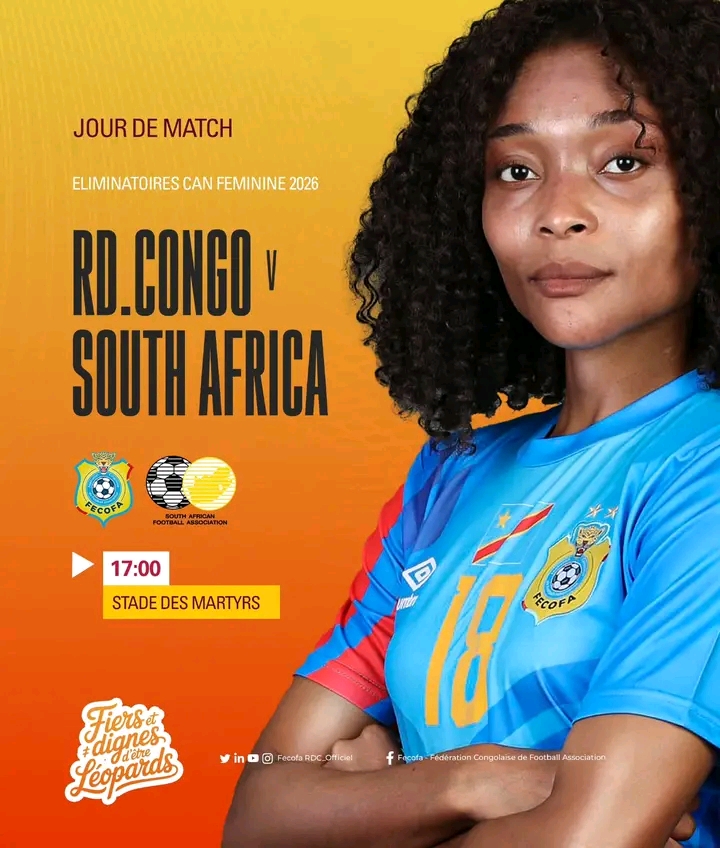 La sélection Nationale de Léopards dames affrontent ce mercredi 22 octobre 2025 les Banyana Banyana d’Afrique du Sud au stade des Martyrs de Kinshasa, pour le match aller du dernier tour des éliminatoires de la Coupe d’Afrique des nations féminine 2026.