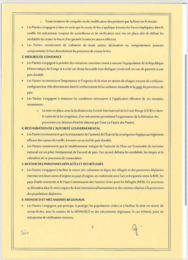 Le communiqué signé conjointement par les deux partie mentionne des points majeurs de cet accord de principes, qui sera suivi de nouvelles discussions pour la signature d’un accord de paix proprement dit.