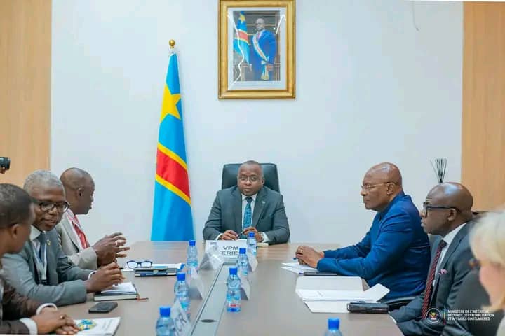 Le Vice-Premier Ministre, Ministre de l’Intérieur, Sécurité, Décentralisation et Affaires coutumières, Jacquemain Shabani Lukoo, a reçu en audience le jeudi 21 août 2025, le Coordonnateur résident du Système des Nations-Unies, Bruno Lemarquis, accompagné des représentants du PNUD, de l’OIM et du HCR.
