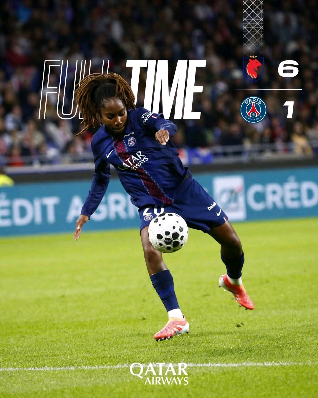 Après un court espoir né d’une égalisation à la demi-heure de jeu, les joueuses du PSG ont sombré face à la puissance lyonnaise. Parmi elles, la Congolaise Kanjinga a tenté de résister. Avec 37 ballons touchés et deux tirs cadrés, elle s’est battue mais n’a pas pu empêcher la lourde défaite de son équipe.