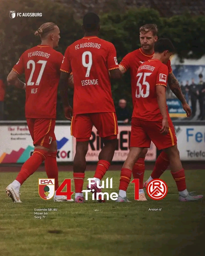 Mené à la pause, Augsbourg a renversé la vapeur en seconde période. Essende a d’abord égalisé à la 57e minute avant de sceller la victoire par un second but personnel dans le temp additionnel. Une performance rassurante à l’approche de la nouvelle saison.
