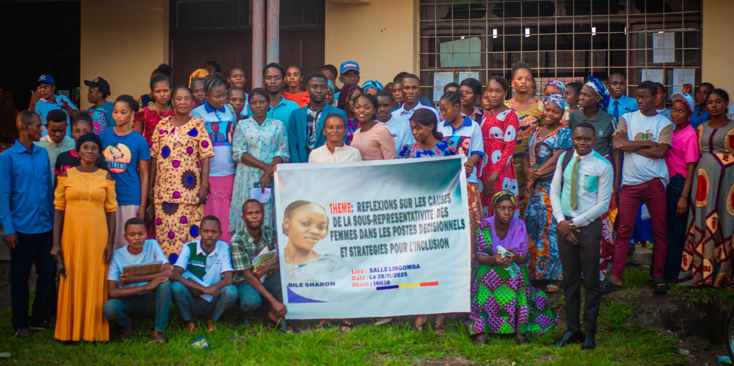 Charon Lwasa Bile, femme leader formée dans le cadre du programme She Leads de International Foundation for Electoral l’IFES, a organisé une activité de sensibilisation le 28 novembre 2025 à Inongo, axée sur la faible représentativité des femmes dans les postes décisionnels en République Démocratique du Congo.