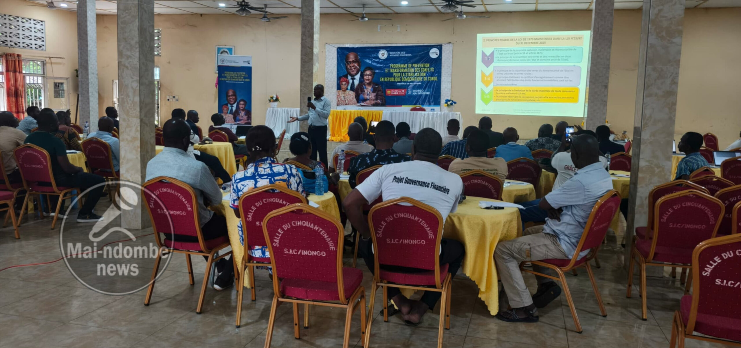 Les travaux se sont tenus dans la salle du Cinquantenaire des Sœurs Immaculées Conceptions, sous la conduite d’une délégation venue de Kinshasa, comprenant notamment le professeur Raphaël Kasongo Kabusa, Me Jacques Dibemba et M. Charles Ngao. L’objectif principal de cette mission était d’appuyer la coordination provinciale de la CONAREF dans le renforcement des capacités des acteurs locaux et des services de l’administration foncière pour la mise en œuvre effective de la réforme.