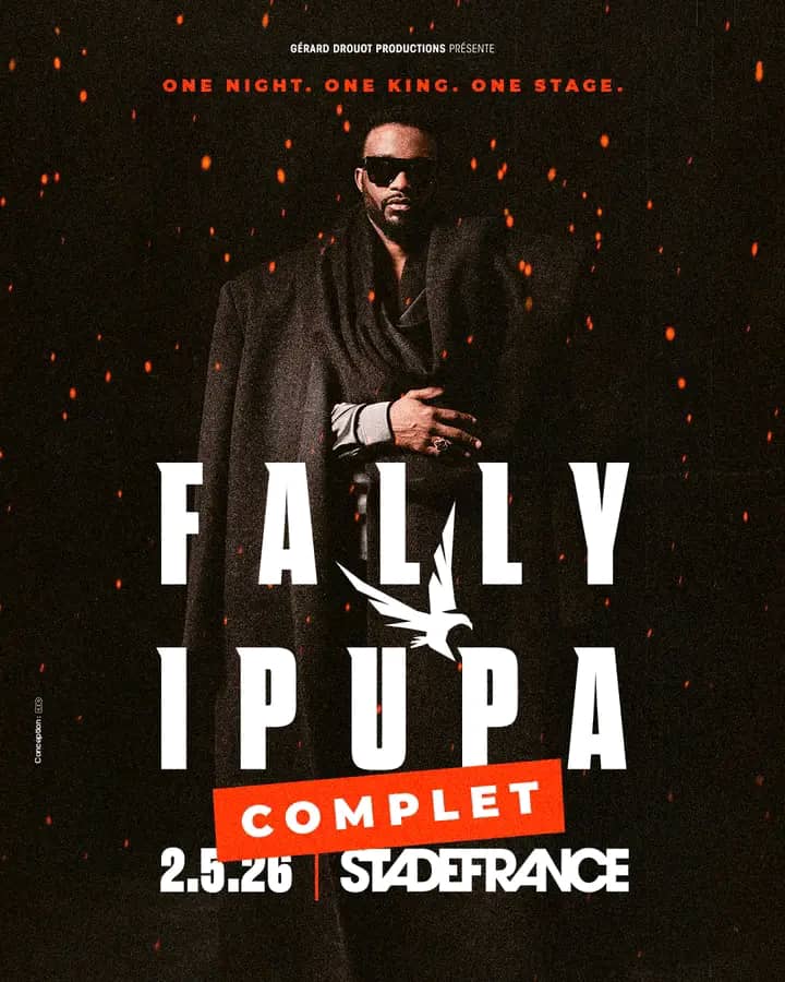 Le concert de Fally Ipupa prévu le 2 mai 2026 au Stade de France affiche complet, d’après l’annonce officielle des organisateurs faite le jeudi 13 novembre dernier. L’événement est sold out, confirmant une fois de plus l’immense popularité de l’artiste congolais.
