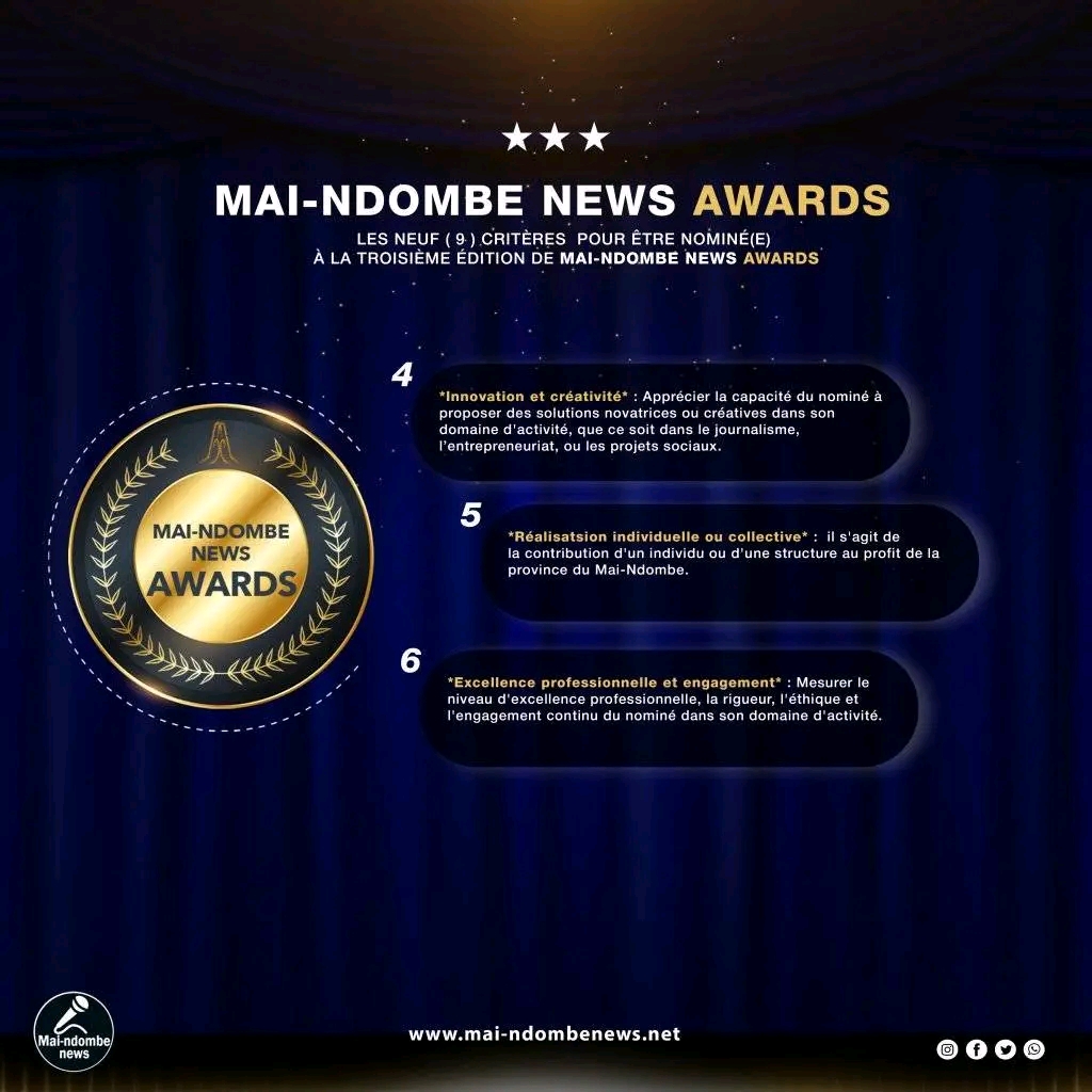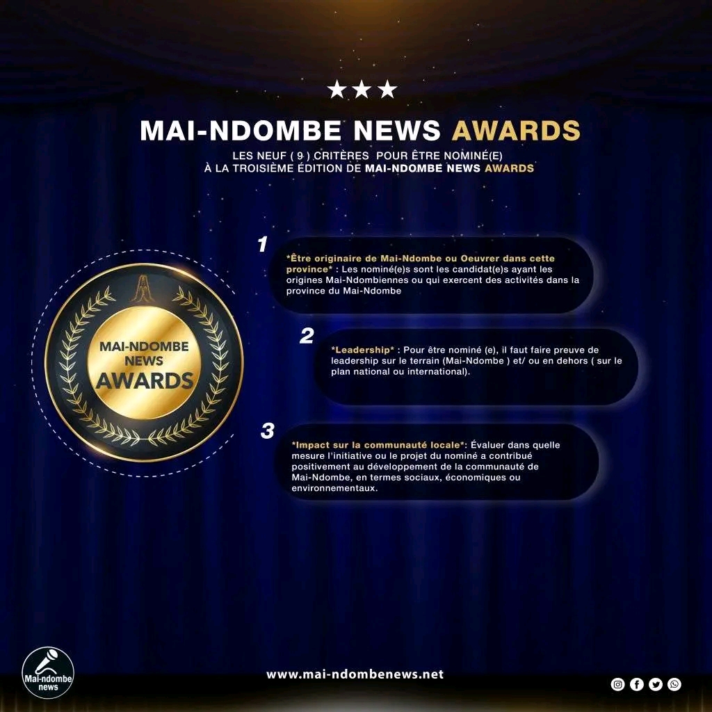 Le comité d’organisation de la troisième édition de Mai-Ndombe News Awards, a dévoilé, ce mardi 11 février, les neuf (9) critères de sélection pour être nominé(e) à cet évènement.