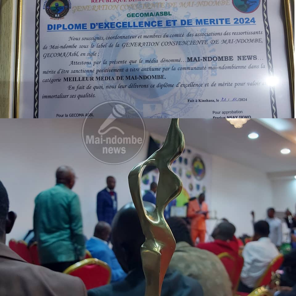 Le média en ligne Mai-ndombenews.net a reçu un prix d’excellence et de mérite, ce samedi 21 décembre 2024. Et ce, lors de la deuxième édition de la « soirée Mai-Ndombe » organisée par une Association Sans But Lucratif dénommée la Génération Consciente de Mai-ndombe ( GECOMA/ ASBL ).