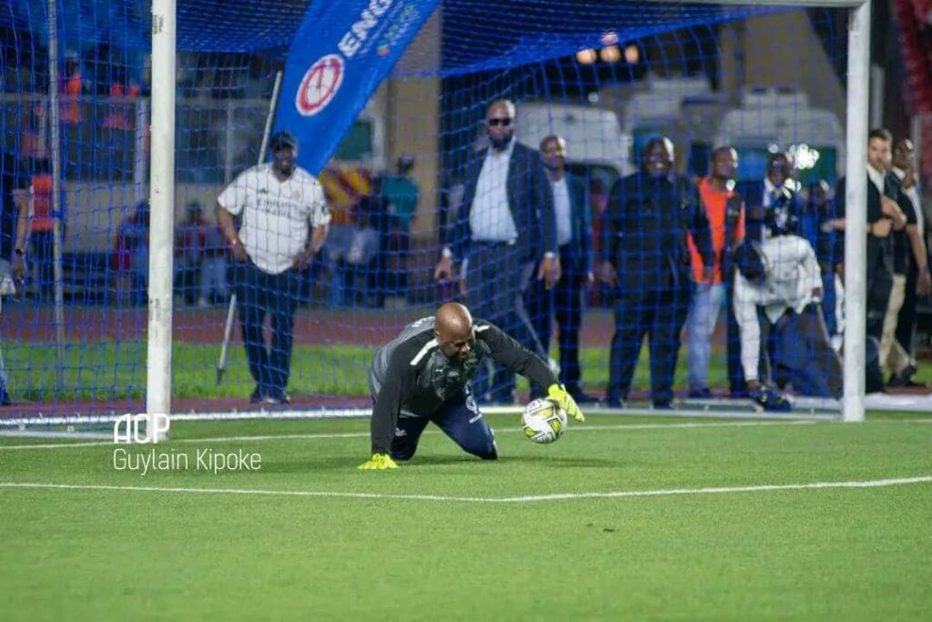Accompagné de la distinguée Première dame Denise Nyakeru, le Chef de l’État a d’abord donné le coup d’envoi de ce match de gala avant de faire son entrée à la 86ème minute, comme gardien de but, sous les ovations du public.