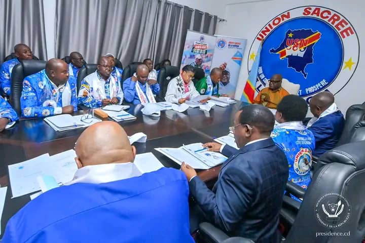 Le Président de la République, Félix Antoine Tshisekedi Tshilombo, a de nouveau réuni les cadres de l’Union sacrée de la Nation (USN) le dimanche 10 août au siège de la plateforme, dans la commune de Gombe, à Kinshasa. Et ce, une semaine après leur dernier échange.