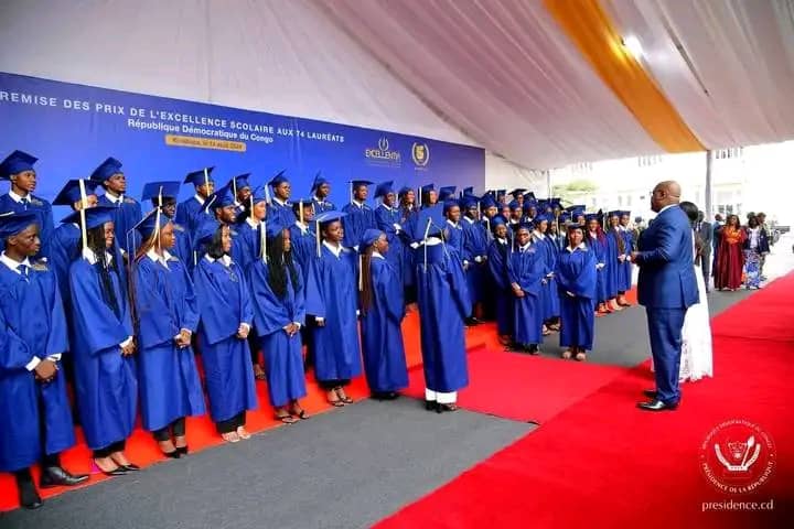 Le couple présidentiel a honoré de sa présence la cérémonie de remise des prix aux 74 boursiers du programme Excellentia, ce mercredi 14 août au palais du peuple à Kinshasa.