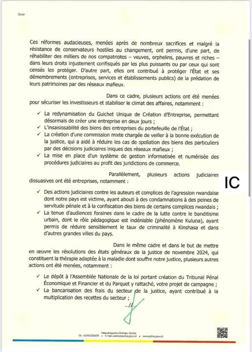Malgré sa démission, Constant Mutamba dit ne pas renoncer à son combat : « Je ne saurais abandonner le combat pour une justice juste et équitable pour tous. »