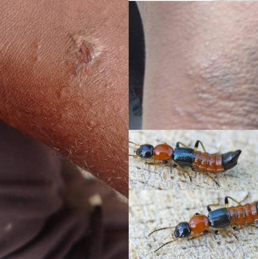 Ce coléoptère d’environ 1 cm, aux couleurs rouge et noir, cache un véritable danger en cas d’écrasement sur la peau.Il libère une toxine appelée pédérine, responsable de fortes démangeaisons et de brûlures sur la peau, visibles entre 12 et 36 heures après le contact, surtout en cas de grattage.