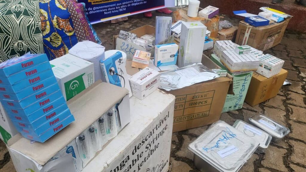Son représentant personnel a remis au gouverneur militaire du Nord-Kivu, Général-major Evariste Somo KAKULE, un lot de vivres et de non-vivres comprenant notamment des tôles et clous, des pagnes pour les mamans sinistrées, des médicaments et matériels chirurgicaux, des poches de sang pour les nécessiteux.