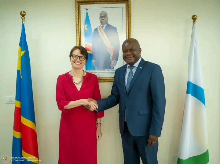 Jeudi dernier à Kinshasa, le ministre délégué aux Affaires étrangères en charge de la Francophonie et des Congolais de l’étranger, Crispin Mbadu, a reçu en audience l’ambassadrice du Royaume-Uni en RDC, Alyson King. Les échanges ont porté sur plusieurs sujets d’intérêt commun, notamment la coopération bilatérale, l’ajustement du mandat de la MONUSCO, la crise sécuritaire dans l’Est de la RDC, la situation des Congolais en situation irrégulière en Grande-Bretagne ainsi que l’appui humanitaire du Royaume-Uni.