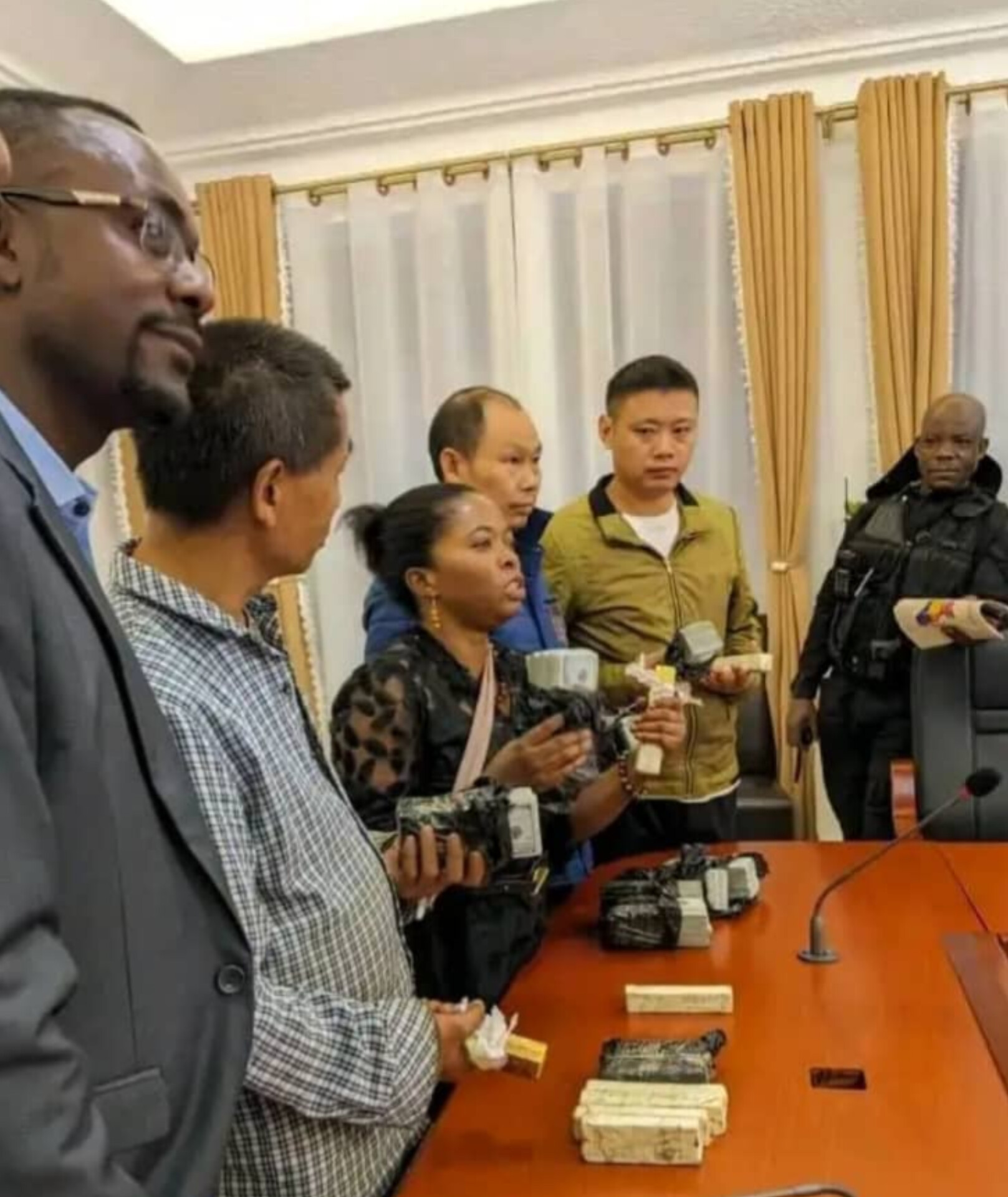 Accompagné de ces services, le gouverneur de la province du Sud-Kivu, Jean-Jacques Purusi, a arrêté, le samedi 04 janvier 2025, trois ( 3 ) trafiquants chinois, en possession illégale de 10 lingots d’or ainsi que 800.000 dollars américains en espèce.