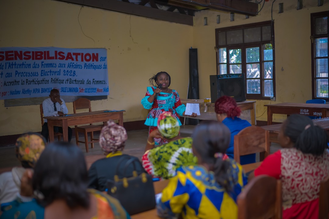 Mme Abethy Bawula a reuni le 02 décembre 2025, les femmes dans un atelier de sensibilisation destiné à éveiller leur conscience politique à Inongo, chef-lieude la province du Mai-Ndombe. Cette initiative avait pour objectif de combattre la faible représentation féminine dans les instances décisionnelles et à encourager un leadership plus inclusif lors des prochaines élections.